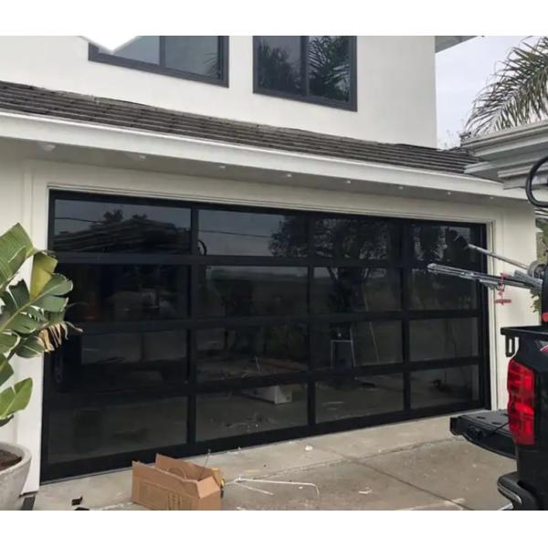 These Extruded Frame Full View Aluminum Garage Doors are perfect for large span openings in villas and offer wind resistance and insulation. The transparent garage door glass sectional garage door is also water tightness class 3. This Aluminum modern security sectional automatic door is perfect for those who need a secure and modern look for their garage.